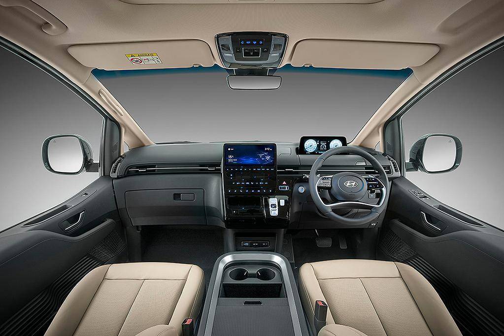 ภายในแม้ยังไม่มีข้อมูลแต่คาดว่ายกออปชันมาจาก STARIA สันดาปด้วยห้องโดยสารเพลิดเพลินและสะดวกสบายพร้อมคุณภาพการเก็บเสียงเหนือระดับ เพียบพร้อมด้วยอุปกรณ์ เพื่อความสะดวกสบายแบบไม่มีที่สิ้นสุดอย่าง จอมาตรวัดดิจิตอลขนาดใหญ่ 10.25 นิ้ว ติดตั้งบริเวณด้านบนของแผงคอนโซล เพิ่มทัศนวิสัยให้ผู้ขับขี่มากขึ้น หน้าจอระบบสัมผัสขนาด 8 นิ้วติดตั้งบริเวณคอนโซลกลาง พร้อมลำโพง 6 ตัว รองรับ Apple CarPlay Android Auto แบบไร้สาย