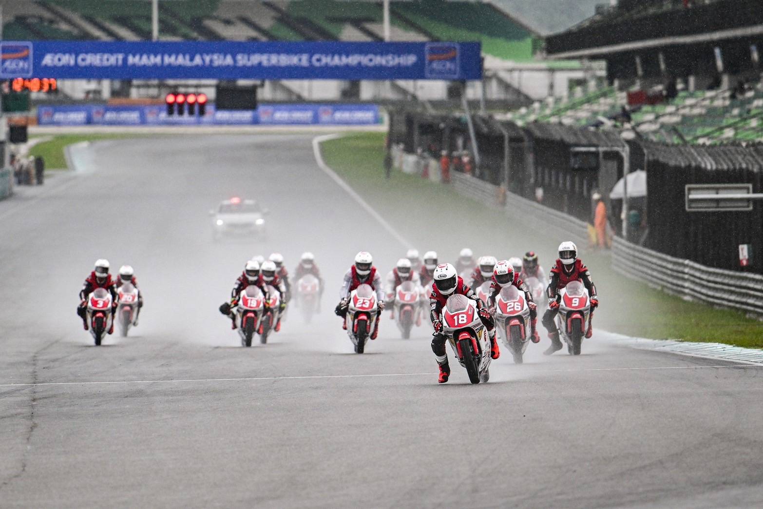 การแข่งขันเรซแรก ประลองความเร็วท่ามกลางสายฝน 11 รอบ “เขียน” เสือเขียน มีเดช หมายเลข 18 ดาวรุ่งไทยเจ้าของโพล โชว์ฟอร์มเด่นขี่ฝ่าสายฝน ก่อนเข้าสู่ 5 รอบสุดท้าย กลุ่มนำประชันความเร็วแบบต่อเนื่องทุกโค้ง จบด้วย “อาบิมานยู บินตัง” หมายเลข 26 จากอินโดนีเซีย คว้าแชมป์ไปครอง ตามมาด้วย “เขียน-เสือเขียน” ในอันดับ 2 และ “ตะวัน” ภีมะ พจนอารีย์ หมายเลข 21 ทะยานขึ้นโพเดียมอันดับ 3 ปลดล็อกโพเดียมแรกได้สำเร็จ