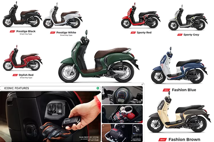 New Honda Scoopy รุ่น Sporty และ Fashion รวมถึง Stylish ซึ่งทำให้พร้อมดึงดูดความสนใจของคนรักสกูตเตอร์ในประเทศมากยิ่งขึ้น ในรุ่น Sporty และ Fashion ยังคงตัวเลือกสี Sporty Grey และ Sporty Red สำหรับรุ่น Sporty และ Fashion Blue และ Fashion Brown สำหรับรุ่น Fashion