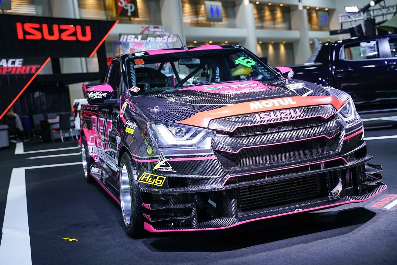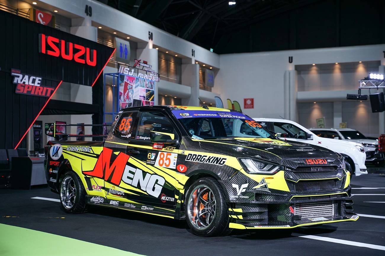 ค่าย ISUZU ส่งรถแต่งพิเศษ 6 คัน เริ่มที่ ISUZU D-MAX SPARK ขับโดยเบสท์เทอร์โบยำ แท็กทีมมาพร้อมกับ NEW! ISUZU D-MAX SPACECAB จากหนุ่ม เม้งการยาง ชลบุรี รถแข่งทั้ง 2 คันโมดิฟายจัดเต็มแพ็คคู่ แต่งสเต็ปเดียวกัน เครื่องยนต์ 3.0 ดีดีไอ บลูเพาเวอร์ ปรับให้มีกำลังสูงสุดถึง 524 แรงม้า แรงบิดสูงสุด 1,100 นิวตัน-เมตร จุดประกายความแรงด้วยกล่องพ่วงเพิ่มแรงม้า ECU Shop หัวฉีดแต่งจากโอ๊ต-อู่ช่างขวัญ เทอร์โบ Flex ชุดลูกสูบ ก้านสูบ ข้อเหวี่ยง MRX คลัชต์ BRC เพิ่มความมั่นใจด้วยชุดช่วงล่าง Penske setup บุญยางชลบุรี ล้อ MK SPORT หนุ่มเม้ง การยางชลบุรี พร้อมยาง Hankook 275/40 R18 ระบบเบรก Nexzter