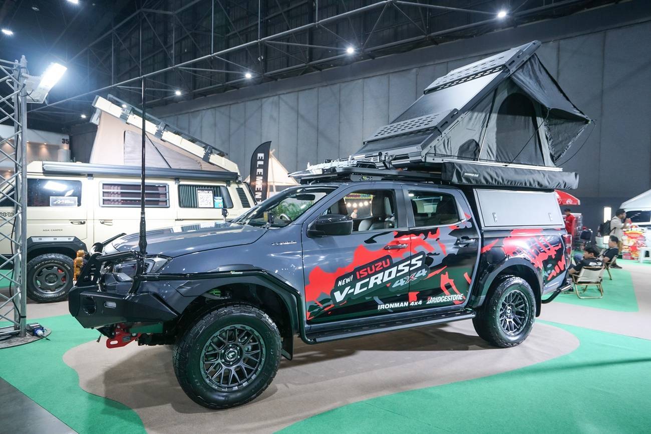 และอีกคันกับ สีเทาไอลาย์ โอเพค (Islay Gray Opaque) มาพร้อมชุดแต่ง IRONMAN 4X4 ตอบโจทย์นักเดินทางสายลุย ด้วยชุดแต่ง ดังนี้ กันชนหน้าแบบสามเขาพร้อมไฟสปอร์ตไลท์ LED รอกไฟฟ้าขนาด 9,500 ปอนด์ ไซเรียลการ์ดพร้อมบันไดข้าง กันชนหลังแบบเต็มรองรับเซ็นเซอร์และโซน่าด้านหลัง ชุดขาจับพร้อมแร็คหลังคาอะลูมิเนียม Atlas ชุดขาจับพร้อมไฟสปอร์ตไลท์รอบคัน หลังคาอะลูมิเนียม Alu Cab คุณภาพสูง ขาจับพร้อมแม่แรงไฮลิฟท์แจ็ค เต๊นท์หลังคาอะลูมิเนียม Orion ยาง BRIDGESTONE DUELER AT002 ขนาด 285/60 R18 และล้อ Lenso รุ่น MX Cezar ขนาด 18 นิ้ว โดยรถคันดังกล่าวโชว์ ณ โซน Camping