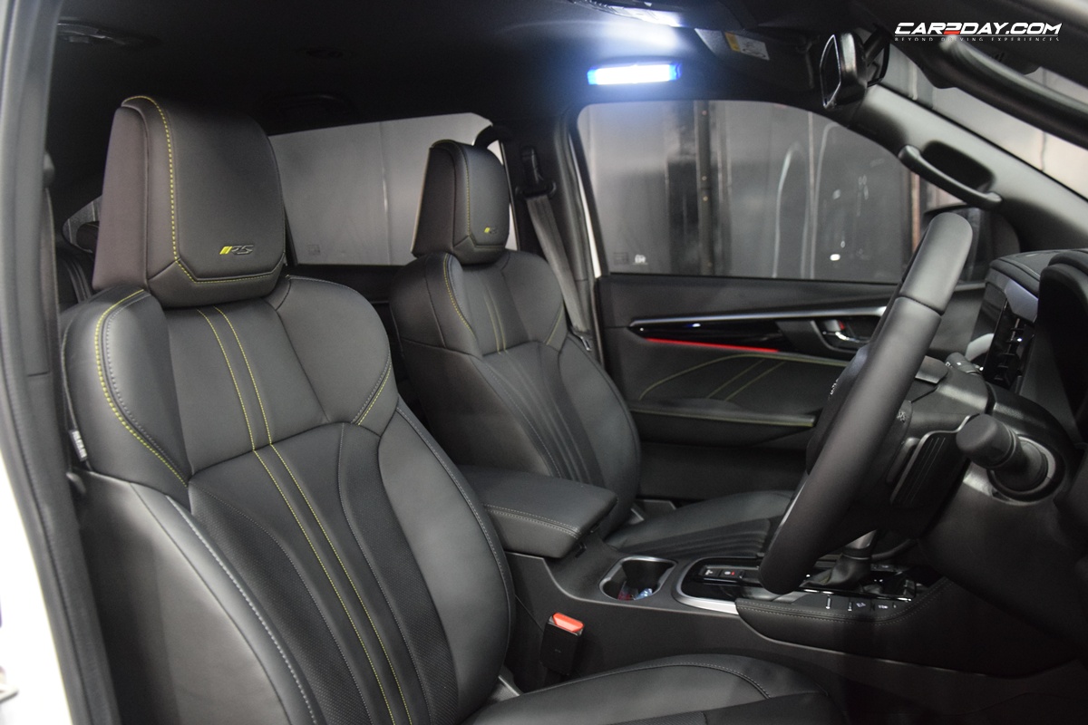 - รุ่น RS ทรงพลังด้วยกระจังหน้า BLACK DIAMOND GRILLE พร้อมสะท้อนความพีคด้วยสัญลักษณ์ RS ด้วยวัสดุ Black Chrome สปอร์ตด้วยล้ออัลลอย RS Design ขนาด 20 นิ้ว พร้อมยาง 265/50 R20 เพิ่มความสปอร์ตด้วย Fender Garnish สีดำ ช่องระบายอากาศด้านข้าง Side Garnish สัญลักษณ์ RS หลังคาดำ Black Roof พร้อมสัญลักษณ์ RS โดดเด่นเท่สะดุดตาด้วยสี LIME GREEN คิ้วชายล่างตกแต่งสปอร์ตพร้อมบันไดข้าง