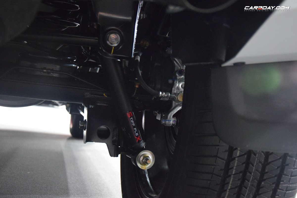 ใหม่!!! โช้กอัพแบบ STIFF FLEX ออกแบบมาเพื่อลดการสั่นสะเทือน และการโคลงของรถขณะขับขี่ นุ่มนวล มั่นใจทุกครั้งที่เข้าโค้ง พร้อมช่วงล่างคอยล์สปริงทั้ง 4 ล้อ ช่วงล่างด้านหน้าแบบอิสระปีกนก 2 ชั้น Double Wishbone และเหล็กกันโคลง ช่วงล่างด้านหลังแบบ 5-Link Suspension ครั้งแรกในรุ่น RS กับ Ultimate ด้วยพวงมาลัยไฟฟ้า (Electric Power Steering) ขับสบายเหนือกว่าคล่องตัวทั้งในเมือง และนอกเมือง