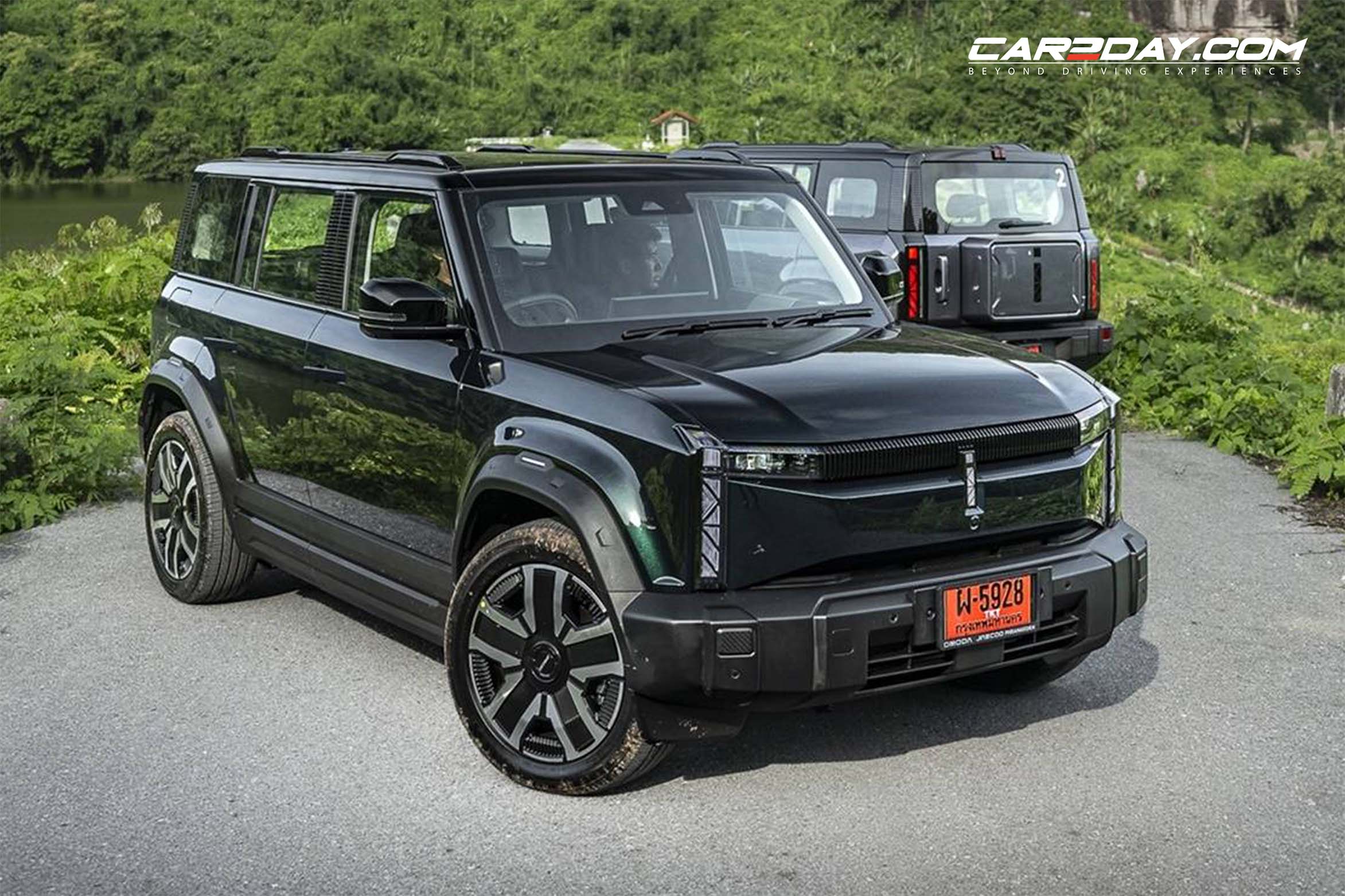 จาก iCAUR 03 ผสมผสานดีไซน์ความเป็น Land Rover Defender ฉีกกฎเกณฑ์งานดีไซน์ด้วย E-CUBE ทรงกล่องดีไซน์ลายเส้นดูเรียบง่าย เฉียบคม ชัดเจน แต่มีเอกลักษณ์ลงตัว ส่วนด้านล่างของกระจังหน้าออกแบบให้ขยายกว้างขึ้นเสริมอารมณ์แบบออฟโรดที่สมบุกสมบันเริ่มที่กระจังหน้าทรงซี่แนวตั้งสีดำแปะตราตัวอักษร I มีไฟเรืองแสง พร้อมชุดไฟหน้าดีไซน์ยูคว่ำประกบด้วยชุดไฟหน้า LED แบบ Matrix Adaptive ขนาดเล็ก มีไฟแนวตั้งแบบ DRL LED สองข้างรับกับกันชนหน้าสีดำเข้ม