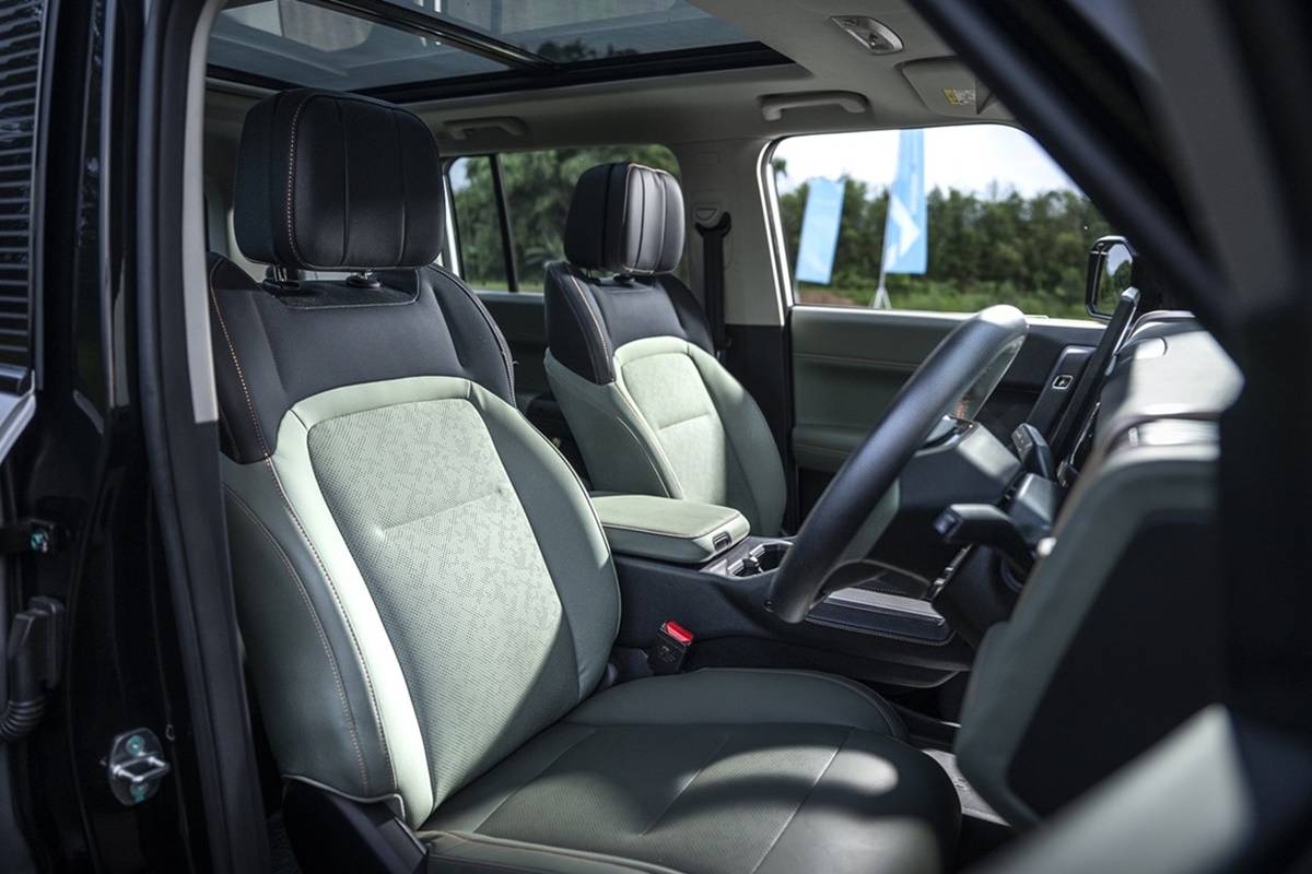 รองรับการขับขี่ออฟโรดด้วยวัสดุภายในที่เป็นมิตรต่อสิ่งแวดล้อมและให้ความรู้สึกสบายสำหรับผู้ขับขี่ มาพร้อมกับเบาะนั่งคู่หน้าปรับไฟฟ้าด้านคนขับปรับ 6 ทิศทางพร้อมระบบบันทึกตำแหน่งเบาะที่นั่ง (Memory seat)และคนนั่งปรับได้ 4 ทิศทาง ฟังก์ชันเพิ่มเติมมากมายระดับเฟิร์สคลาสที่ช่วยเพิ่มความสะดวกอาทิ ระบบรองน่องปรับไฟฟ้า 4 ทิศทาง (4-Way Electric Leg support) ปรับอุณหภูมิของเบาะที่นั่งผู้โดยสารด้านหน้าของรถ ที่สามารถช่วยระบายอากาศเพิ่มความสบายขณะขับขี่ในทุกสภาพอากาศ
