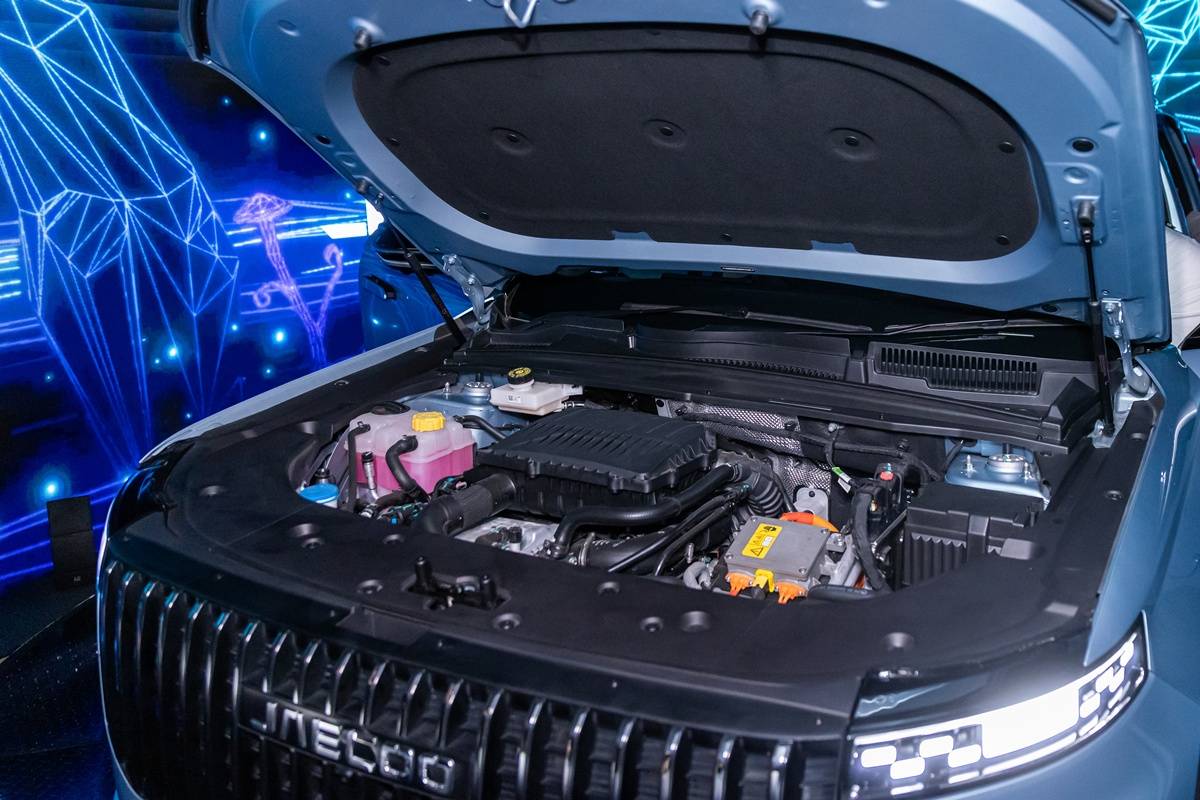 ล้ออัลลอยขนาด 18 นิ้วพร้อมยาง 235/55R18 และขนาด 19 นิ้ว พร้อมยาง 235/50R19 ตัวรถนำพื้นฐานของ CHERY Explore 06 เปลี่ยนหน้าตาให้สมกับความเป็น JAECOO ด้วยแพลตฟอร์ม T1X ทำให้ตัวรถมีขนาดพอดีตัวตั้งแต่