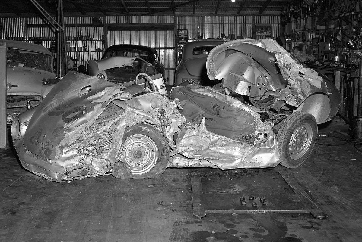 รถบรรทุกที่ขนย้ายซากของ Porsche 550 Spyder เกิดอุบัติเหตุพลิกคว่ำหลายครั้งอย่างไม่มีสาเหตุชัดเจน