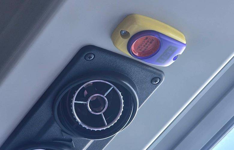 เมื่อถึงป้ายรถเมล์ที่จะลง ให้กดปุ่มแจ้งเตือนที่อยู่ใกล้ตัวที่สุด เพื่อเป็นการแจ้งคนขับให้ทราบ (คล้าย ๆ กิ่งรถเมล์บ้านเรา) รอให้รถจอดสนิทก่อนจึงลุกจากที่นั่งแล้วเดินลง