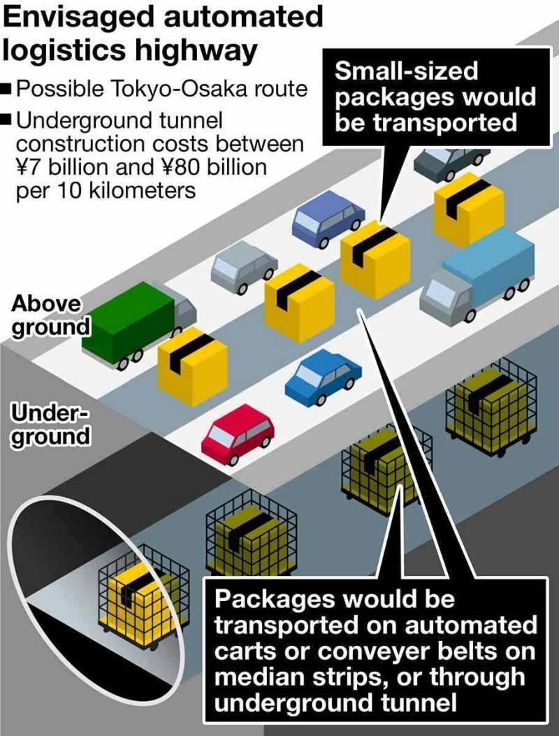 บริษัทโลจิสติกส์หลายแห่งทั่วโลกมีความหวังสำหรับรถบรรทุกไร้คนขับเต็มรูปแบบที่จะสามารถทำงานได้ตลอด 24 ชั่วโมงโดยไม่จำเป็นต้องนอนหรือพักเข้าห้องน้ำ แต่ญี่ปุ่นก็มีทางเลือกอื่น คือต้องการสร้างสายพานลำเลียงที่มีความยาวมากกว่า 500 กม.เพื่อทำการขนส่งสินค้าไปทั่วประเทศ