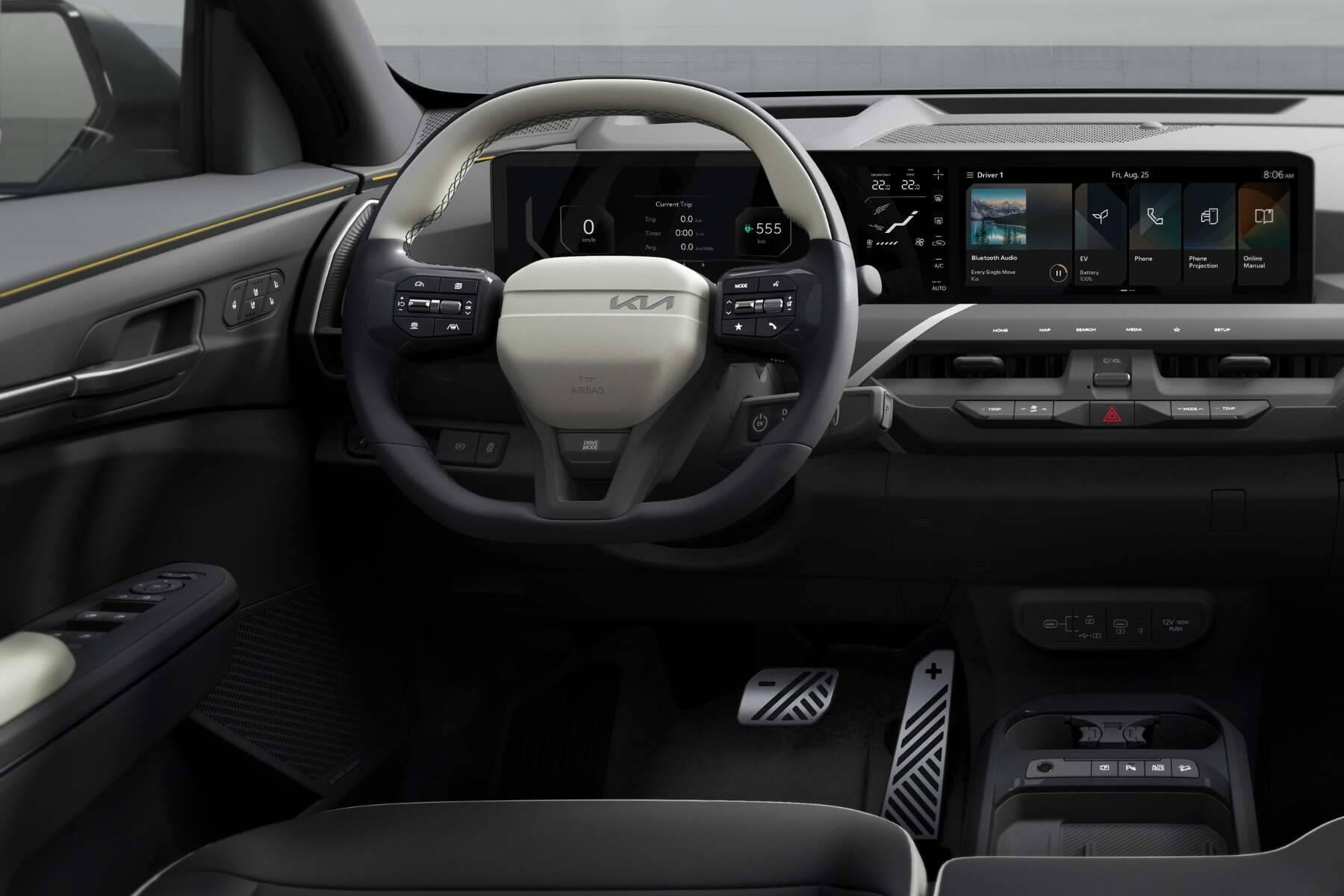 พร้อมออปชันเดิมทั้งคอนโซลหน้าดีไซน์แนวนอนพร้อมจอคู่ขนาดใหญ่แบบลอยตัวที่มีทั้งมาตรวัดดิจิทัล 12.3 นิ้วและจอสัมผัสขนาด 12.3 นิ้ว รองรับ Apple CarPlay, Android Auto ไร้สาย อัปเดทซอฟต์แวร์แบบ OTA  พร้อม KIA Connect ระบบนำทางและตรวจสอบสถานะรถให้ข้อมูลและเนื้อหาที่ครอบคลุมแก่ผู้ขับขี่เพื่อสร้างประสบการณ์แบบอิมเมอร์ซีฟที่เหนือชั้นด้วยเมนูคำสั่งที่ไม่ซับซ้อนช่วยให้สามารถใช้งานฟังก์ชันต่างๆที่เกี่ยวกับ EV ได้ง่ายยิ่งขึ้น
