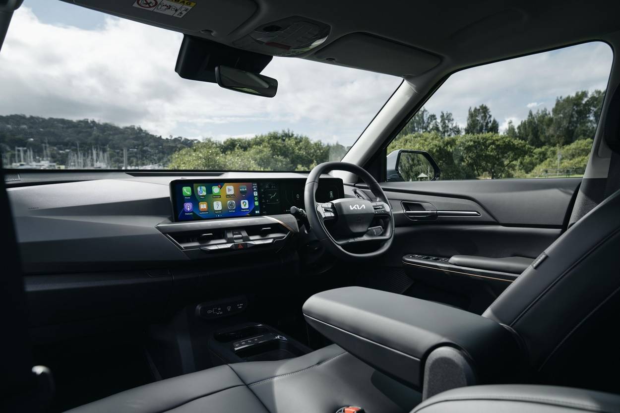 ภายในคอนโซลหน้าดีไซน์แนวนอนพร้อมจอคู่ขนาดใหญ่แบบลอยตัวที่มีทั้งมาตรวัดดิจิทัล 12.3 นิ้วและจอสัมผัสขนาด 12.3 นิ้ว และ รองรับ Apple CarPlay และ Android Auto ไร้สาย อัปเดทซอฟต์แวร์แบบ OTA พร้อม Kia Connect ระบบนำทางและตรวจสอบสถานะรถ เครื่องปรับอากาศแยกอุณหภูมิซ้าย-ขวาพร้อมแอร์หลัง มีระบบอุ่นเบาและยังสามารถสั่งสตาร์ทรถในระยะไกลได้ Remote Smart Parking