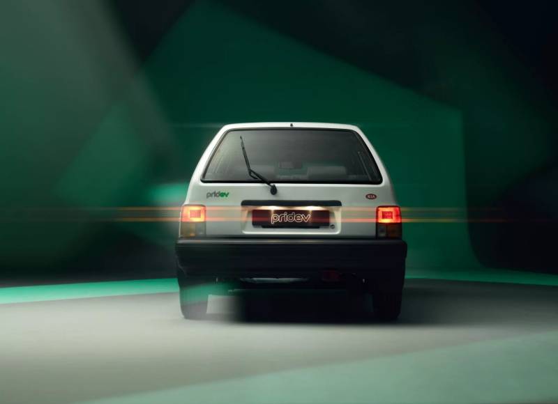 Kia Pride EV ถูกเปลี่ยนขุมพลังจากเครื่องยนต์ 1.3 ลิตร 60 แรงม้า ด้วยมอเตอร์ไฟฟ้า 107 แรงม้า เกียร์ธรรมดา 5 สปีด ซึ่งเกียประเทศอังกฤษได้สร้างสรรค์รถที่สวยงามเพื่อเฉลิมฉลองครบรอบ 80 ปีของบริษัท โดยนำรถเก่าที่วิ่งเล่นในเมืองมาดัดแปลงเป็นรถยนต์ไฟฟ้าและเพิ่มกำลังขับเคลื่อนได้ถึง 77%