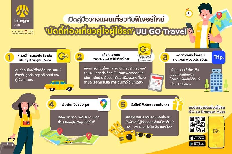 ฟีเจอร์ GO Travel ภายใต้แอป โก บาย กรุงศรี ออโต้ มีวิธีใช้งานดังนี้