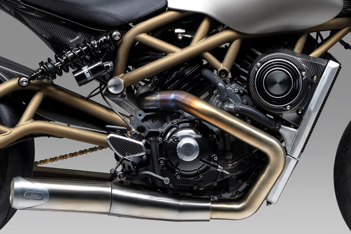 ตัวรถใช้วัสดุคาร์บอนไฟเบอร์เป็นหลัก ถังน้ำมันความจุ 19 ลิตร และเบาะสูงเพียง 790 มม. ทำให้ควบคุมง่ายแม้สำหรับผู้ขี่รูปร่างไม่สูงมาก