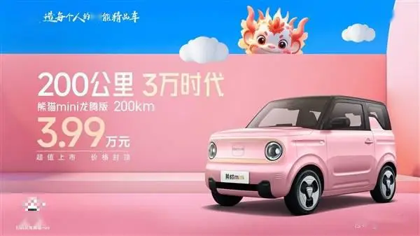 Geely Panda Mini Dragon Edition เป็นรถยนต์ไฟฟ้า ราคาย่อมเยาที่ 39,900 หยวน หรือประมาณ โดยมีระยะทางที่วิ่งได้ 200 กิโลเมตร จากการทดสอบมาตรฐานจีน CLTC และรองรับการชาร์จเร็ว นี่เป็นครั้งแรกที่มีการเปิดตัวรถยนต์ไฟฟ้าในระยะทาง 200 กิโลเมตรในราคา 30,000 หยวน โดยการจำหน่ายราคานี้ บ่งบอกถึงสงครามราคา EV ที่กำลังเกิดขึ้นในประเทศจีน