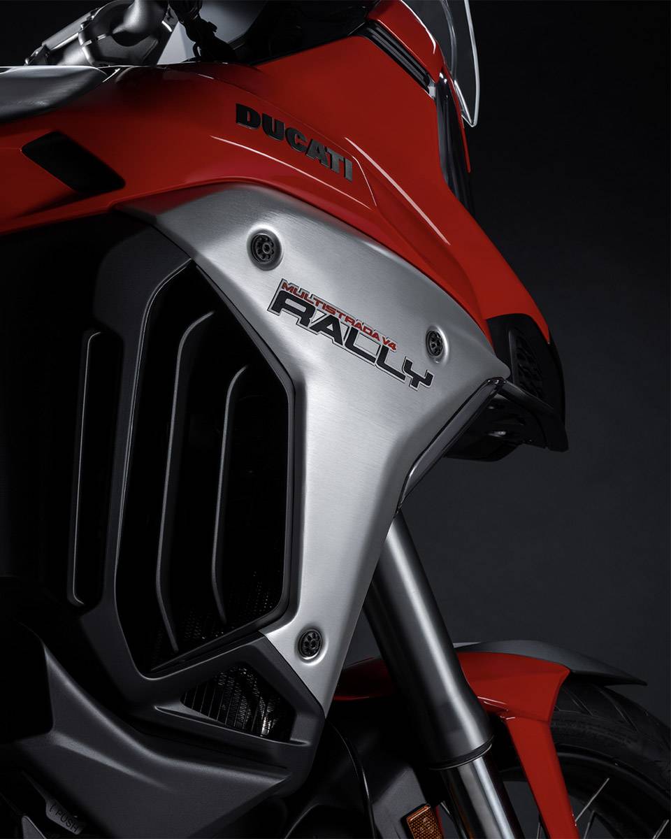 ในด้านรูปลักษณ์ Multistrada V4 Rally เวอร์ชั่นปี 2026 โดดเด่นไม่เพียงแค่ด้วยสีเขียวใหม่ แต่ยังรวมถึงการเปลี่ยนแปลงของตัวถังอีกด้วย กระจกหน้ารถที่กว้างขึ้น 40 มม. และสูงขึ้น 20 มม. พร้อมชิลด์บังลมด้านหน้าเพิ่มเติม ช่วยป้องกันลมและสภาพอากาศได้ดีขึ้น และลดความร้อนของเครื่องยนต์สำหรับทั้งผู้ขับขี่และผู้โดยสาร จุดยึดใหม่สำหรับกระเป๋าสัมภาระและกล่องท้ายรถช่วยเพิ่มความสะดวกสบายให้กับผู้โดยสาร