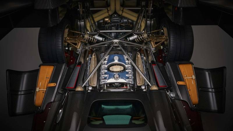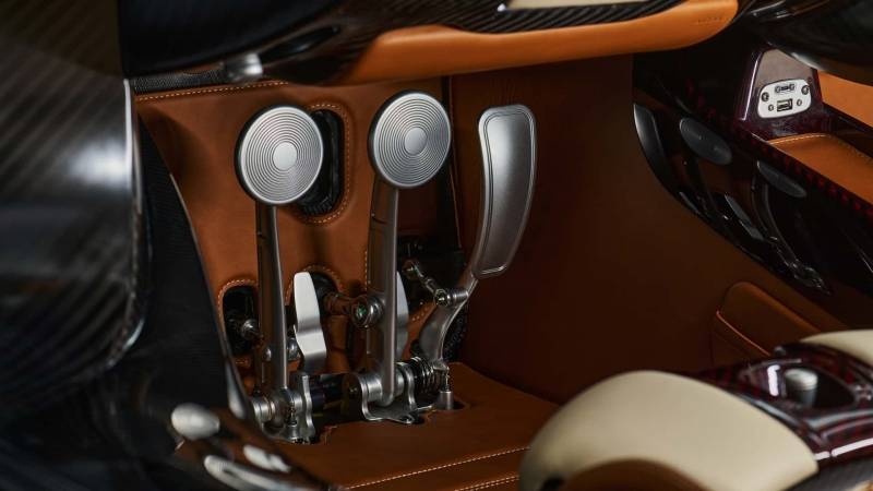 ภายในห้องโดยสาร Pagani ก็ดูสวยงามไม่แพ้รุ่นหลังคาแบบตายตัว คาร์บอนไฟเบอร์ หนัง และอลูมิเนียมปกคลุมแทบทุกตารางนิ้ว ระบบเกียร์ธรรมดา 7 สปีดแบบเปิดโล่งอันเป็นเอกลักษณ์ของ Utopia ยังคงใช้อยู่ และคันเกียร์เองก็มีคาร์บอนไฟเบอร์ขัดเงามาด้วย
