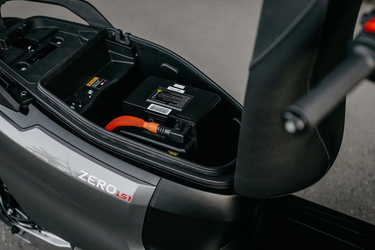 ใต้เบาะของ Zero LS1 มีพื้นที่กว้างพอสำหรับเก็บหมวกกันน็อก 1 ใบ หรือแบตเตอรี่เสริม รวมถึงของใช้ประจำวันอย่างกระเป๋าหรือของกระจุกกระจิก เหมาะสำหรับผู้ใช้งานในเมืองที่ต้องการความสะดวกสบาย