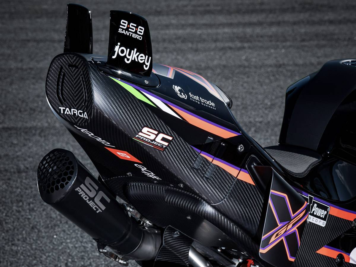 นอกจากนี้แอโรไดนามิกเสริมด้วยแฟริ่งที่ทำจากคาร์บอนไฟเบอร์ทั้งหมด รวมถึงเบาะนั่งรับน้ำหนักด้านหลังที่ทำจากคาร์บอนไฟเบอร์ผลิตโดย PAN Compositi ซึ่งไม่เพียงแต่ช่วยลดน้ำหนัก แต่ยังช่วยปรับปรุงการตอบสนองจากล้อหลังอีกด้วย