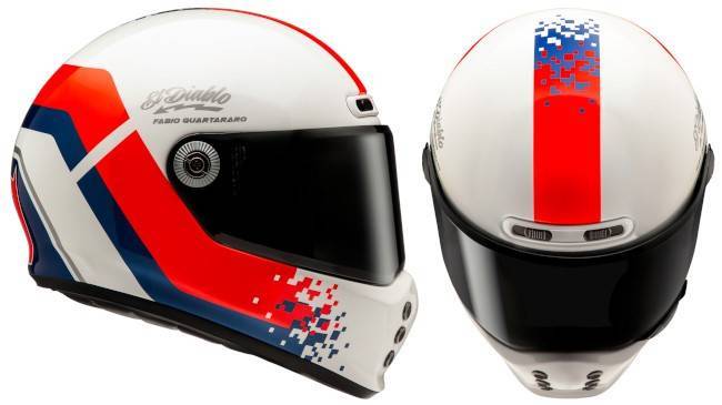 การออกแบบโดดเด่นด้วยลวดลายกราฟิก สีแดง น้ำเงิน และพื้นสีขาว พร้อมด้วยชื่อ ฉายา และนัมเบอร์ 20 ซึ่งเป็นสัญลักษณ์ประจำตัวของ Fabio Quartararo อยู่บนหมวกอีกด้วย นอกจากนี้ในส่วนของชิลด์หน้าเป็น HJ-41 ช่วยปกป้องรังสี UV ได้ 99% และเคลือบสารป้องกันรอยขีดข่วน มาพร้อม Pinloock สำหรับใส่แผ่นกันฝ้า และตัวล็อค-ปลดชิลด์ที่สามารถใส่-ถอด ได้โดยไม่ต้องใช้เครื่องมือ