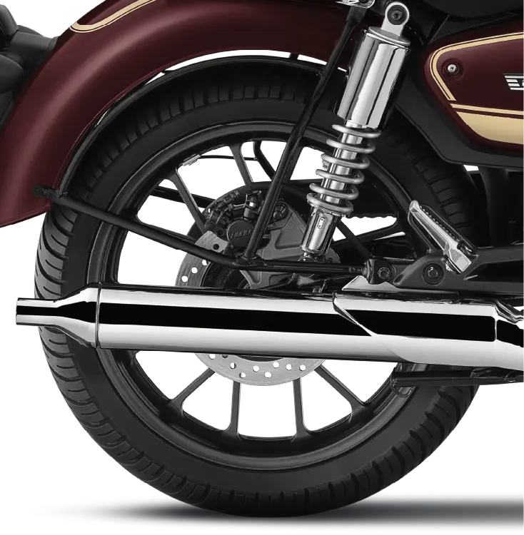 ส่วนช่วงล่างระบบกันสะเทือนหน้าจะเป็นโช้คอัพเทเลสโคปิกพร้อมด้วยยางหุ้มโช้คแบบคลาสสิค ด้านหลังเป็นโช้คสปริงคู่ และระบบเบรกที่ใช้ทั้งสองเป็นดิสก์เบรกหน้าขนาด 310 มม. และหลังขนาด 240 มม. ทำงานร่วมกับระบบเบรก ABS แบบ Dual Channel มาพร้อมกับล้อหน้าขนาด 19 นิ้วและล้อหลังขนาด 17 นิ้ว โดยสวมยางขนาด 100/90 และ 150/70 ที่ล้อหน้าและล้อหลัง