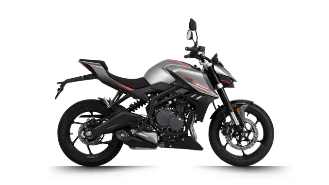 ช่วงล่างยังแตกต่างออกไปโดยที่ช่วงล่างหน้า Upside Dow ไม่ใช่ KYB เหมือนกับ 450RR แต่เป็นแบรนด์ท้องถิ่นจากจีน Yu-an และไม่มีฟีเจอร์ปรับแต่งใดๆ เลย ยกเว้นโช๊คหลัง แต่ระบบเบรกยังคงใช้ดิสก์หน้าคู่พร้อมคาลิปเปอร์เบรกจาก Taisko ซึ่งมี ABS แบบดูอัลแชนเนล ในด้านอิเล็กทรอนิกส์ มีโหมดการขับขี่ 2 โหมด Eco และ Sport มี Lauch Control, Traction control, Quick shifter และหน้าจอเรือนไมล์ TFT ที่รองรับการเชื่อมต่อสมาร์ทโฟน