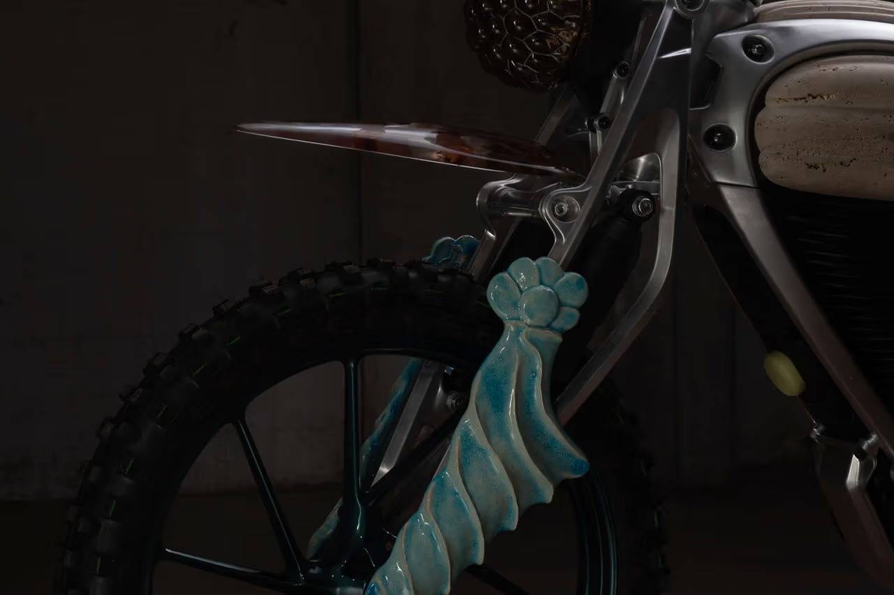 Flying Flea ” Motototem ” สร้างสรรค์ขึ้นจากความร่วมมือกับ Mattia Biagi ศิลปินชาวอิตาลี โดยวัสดุแต่ละชนิดที่เลือกใช้นั้นมีจุดประสงค์ที่มากกว่าแค่ความสวยงาม แต่ยังเชื่อมโยงมอเตอร์ไซค์เข้ากับธรรมชาติในรูปแบบที่สง่างามและสวยงาม โดยใช้ FF.C6 ซึ่งเป็นมอเตอร์ไซค์ไฟฟ้ารุ่นเรือธง