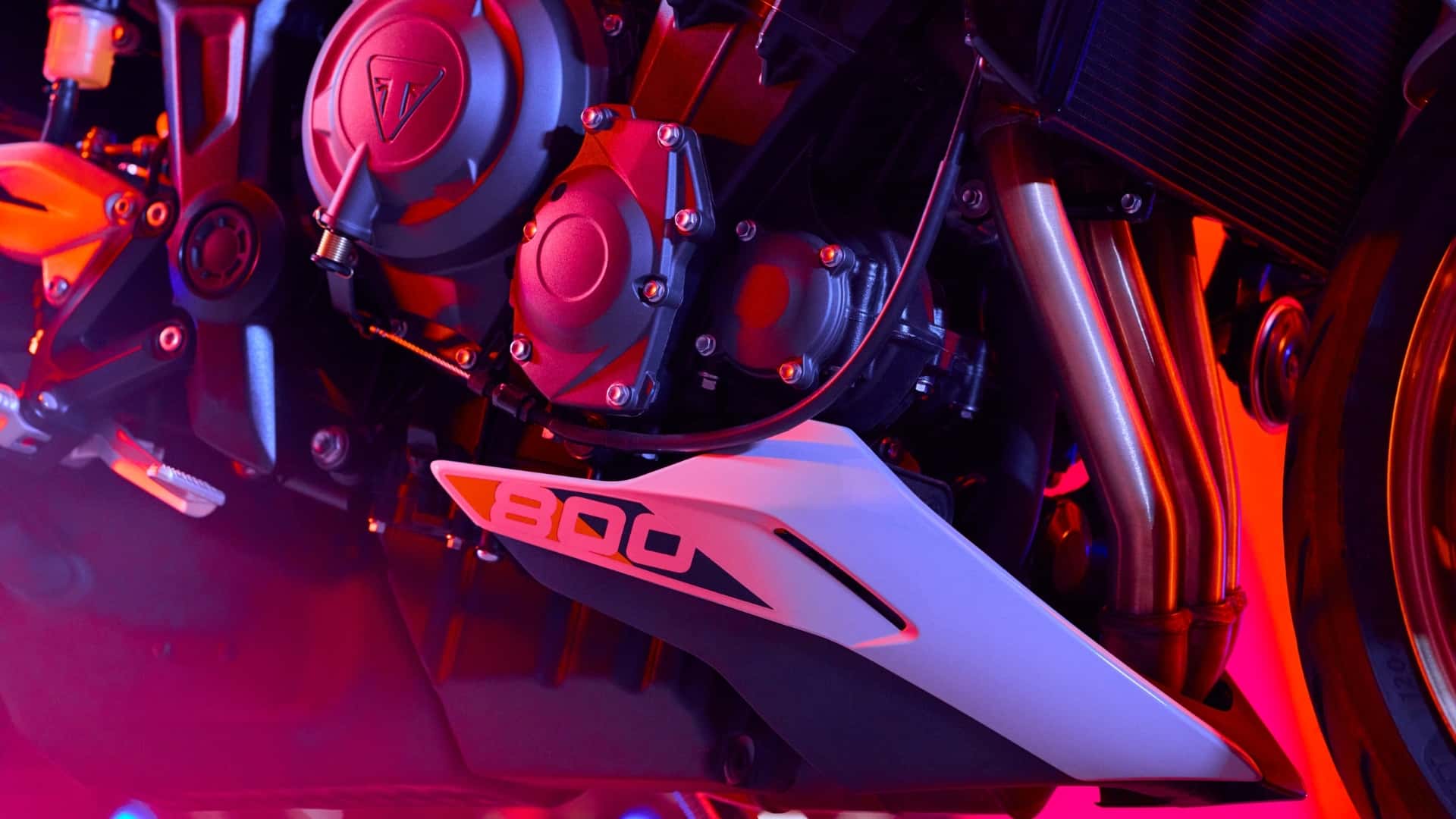 ทีมวิศวกรของ Triumph ได้ออกแบบเครื่องยนต์ 798 ซีซี ให้มีบุคลิกแบบรอบจัดแต่ยังคงแรงบิดที่ใช้งานได้จริง เหมาะกับทั้งผู้ขี่มือใหม่และนักบิดมากประสบการณ์ โครงสร้างภายในประกอบด้วยลิ้นเร่งแบบสามชุด ลูกสูบฟอร์จ และระบบดูดอากาศใหม่ที่ช่วยให้การตอบสนองดีขึ้น รวมถึงเสียงท่อที่ถูกปรับจูนให้มีโทนลึกและกระหึ่มเร้าใจเมื่อรอบสูงขึ้น