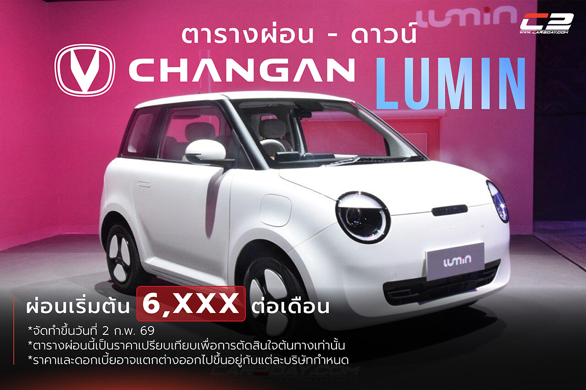 Lumin น้องง่วงสุดหล่อ รุ่น L DC รุ่นชาร์จได้ทั้ง AC และ DC ปรับราคาขึ้นจากเดิม 10,000 บาท เป็น 409,000 บาท (จากราคา 499,000 บาท) ราคาผ่อนเริ่มต้นจะอยู่ที่ประมาณ 5,xxx บาทเท่านั้น พร้อมข้อเสนอพิเศษ สำหรับท่านที่สั่งซื้อ และรับรถยนต์ ตั้งแต่วันที่ 1-28 กุมภาพันธ์ 2569