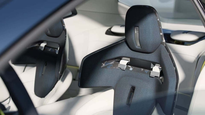 ห้องโดยสารมาในรูปแบบ 2+2 ที่นั่ง ผสมผสานวัสดุเกรดพรีเมียมเข้ากับรายละเอียดทางเทคนิค ใช้หนังสีขาว “Digital Shimmer” ตัดกับคาร์บอนไฟเบอร์ Textreme 360 ที่ทำด้วยมือ สะท้อนอารมณ์รถแข่งมอเตอร์สปอร์ตอย่างชัดเจน