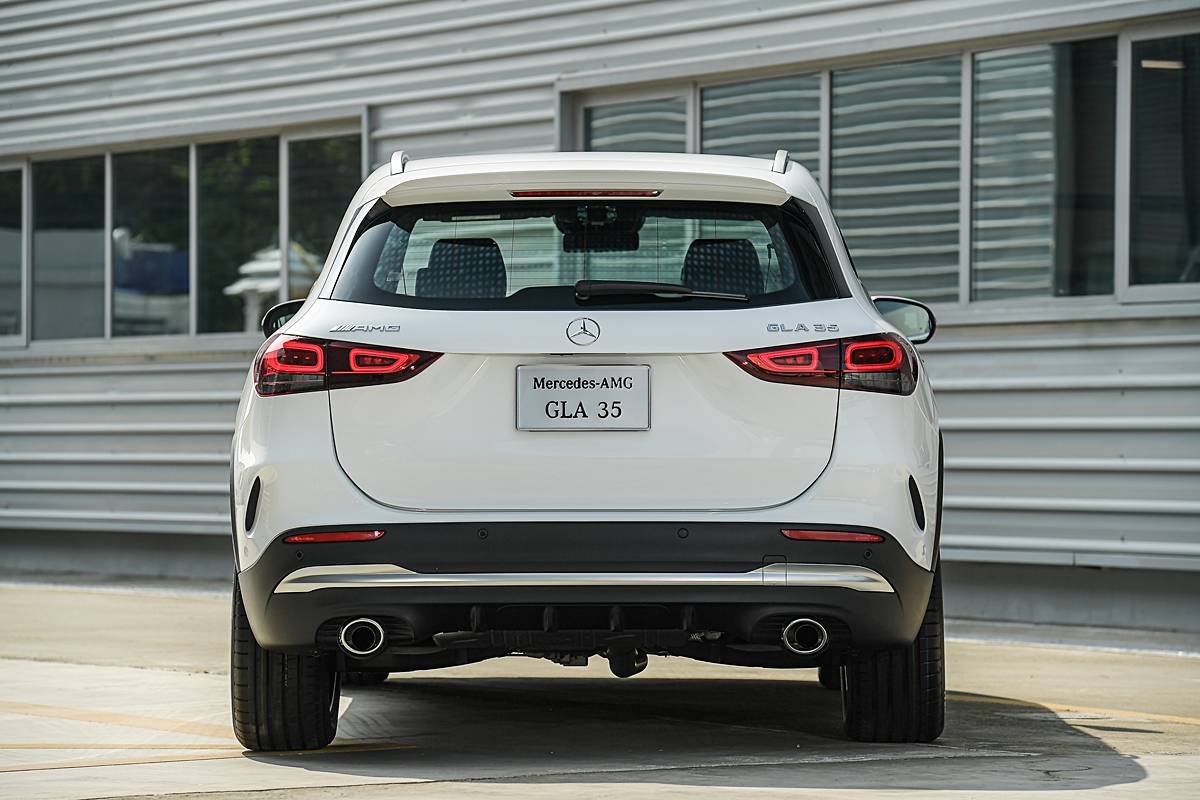 ล่าสุด Mercedes-Benz ประกาสลดราคา Mercedes-AMG GLA 35 4MATIC ประกอบในไทยจากเดิม 3,380,000 บาท เหลือ 2,680,000 บาท (ลดจากเดิม 700,000 บาท) เปลี่ยนบุคลิกเปลี่ยตัวตนให้แรงถึงใจด้วยกระจังหน้าแบบ AMG-specific radiator grill และ ตราสัญลักษณ์ของ Mercedes-Benz ตรงกลาง ด้านกว้างของตัวรถถูกออกแบบมาให้ดูทรงพลังและเร้าอารมณ์ มาพร้อมไฟหน้า LED High Performance แบบ Full LED พร้อมไฟแบบ Day time running light เส้นสายการออกแบบได้อย่างแยบยน แนบเนียนกับชุดแต่ง Crossover รอบคันพร้อมราวหลังคาและไฟท้าย LED ใหม่ช่วยให้ตัวรถโดดเด่นขึ้น ปลายท่อไอเสียเสริมโครเมียม 2 ท่อ ตกแต่งด้านท้ายด้วย AMG Spoiler-lip พร้อมลิ้นสปอยเลอร์ ลายท่อไอเสีย 2 ท่อ แบบ AMG Performance exhaust system พร้อมชุดแต่ง AMG Night Package ทั้งคัน ราวหลังคาสีดำ ล้ออัลลอยขนาดใหญ่ 20 นิ้ว AMG 5 Twin-spoke สีดำด้านพร้อมยาง 255/40R20