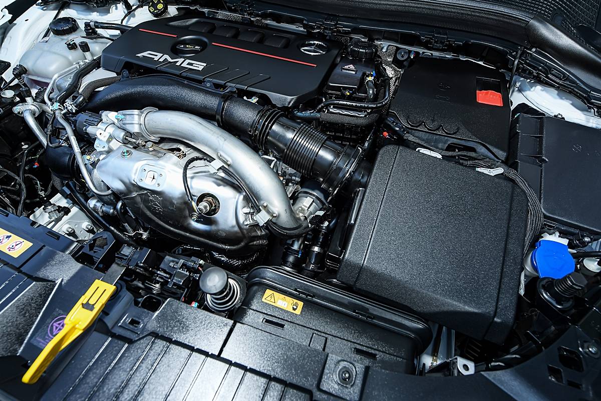 พลังเหนือชั้นด้วยเครื่องยนต์ AMG ขนาด 2.0 ลิตร แบบเทอร์โบชาร์จ 4 สูบ รหัส M260 ให้แรงม้าสูงสุด 306 แรงม้าที่ 5,800 รอบต่อนาที แรงบิดสูงสุด 400 นิวตันเมตรที่ 3,000-4000 รอบต่อนาที สามารถทำอัตราเร่งจาก 0-100 กิโลเมตรได้ในเวลาเพียง 5.1 วินาที ตอบสนองเร็วขึ้นด้วยเกียร์อัตโนมัติ 8 สปีด (AMG SPEEDSHIFT DCT 8G) ช่วยให้เปลี่ยนเกียร์ง่ายรวดเร็ว ตอบรับทุกความเร้าใจได้อย่างสะดวกสบายด้วย AMG Performance 4MATIC ระบบขับเคลื่อน 4 ล้อ สามารถกระจายแรงขับเคลื่อนระหว่างเพลาขับหน้าและหลังแบบ 50:50 ตอบสนองอย่างยอดเยี่ยมขณะเร่งความเร็วออกจากโค้ง