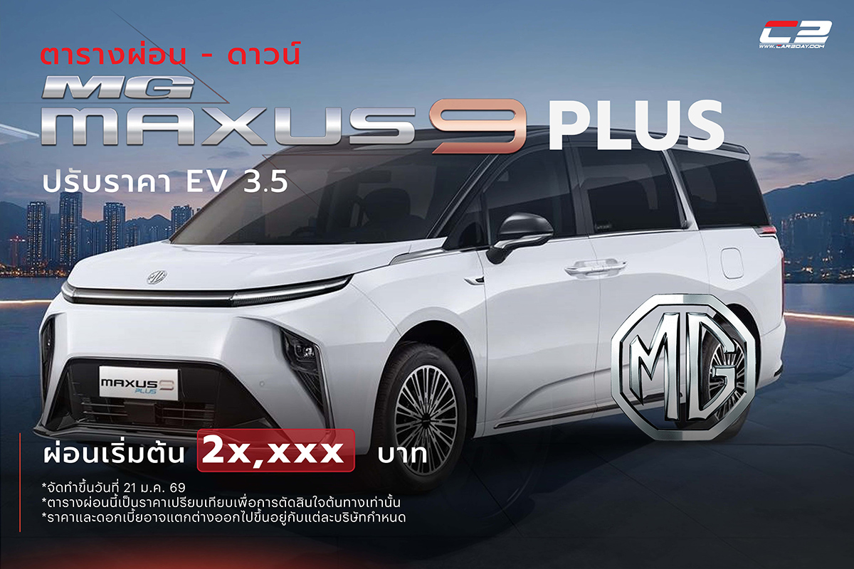 MG MAXUS 9 PLUS คือรุ่นอัปเกรด (Minor Change) ของ MPV ไฟฟ้า 100% ระดับพรีเมียมที่เปิดตัวอย่างเป็นทางการในไทยช่วงต้นปี 2026 นี้ครับ โดยเป็นการปรับปรุงเพื่อแก้โจทย์จากรุ่นเดิมในหลายจุด โดยเฉพาะเรื่องความหรูหราและเทคโนโลยี ผ่อนเริ่มต้น 2x,xxx บาท