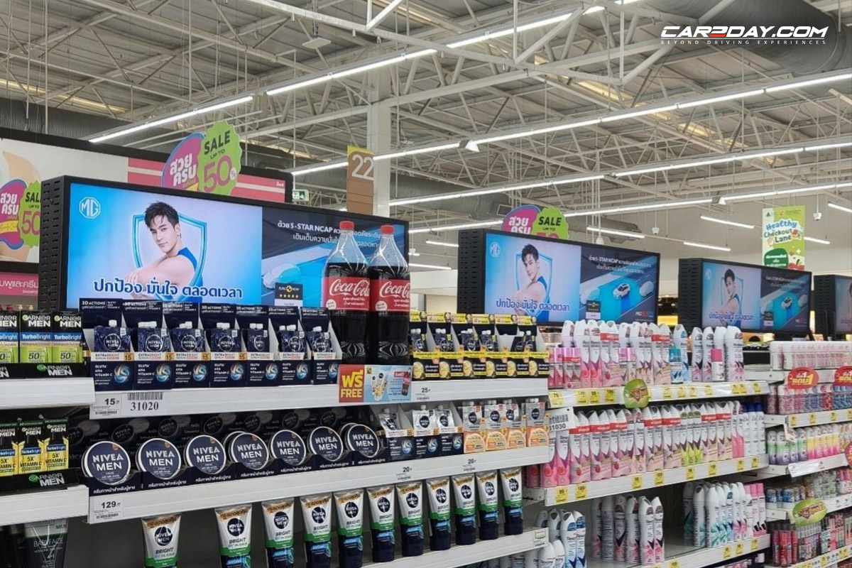 โดยชิ้นงานจะปรากฏอยู่บนป้าย LED ตามแผนกสินค้า (Digital Category Signage) กระจายในแผนกต่าง ๆ อาทิ แผนกผลิตภัณฑ์ความงามและของใช้ส่วนตัว แผนกผลิตภัณฑ์ดูแลผิวกายสำหรับบุรุษ แผนกผลิตภัณฑ์ทำความสะอาด และแผนกเครื่องดื่ม-อาหารเสริมเพื่อสุขภาพและความงาม เป็นต้น รวมถึงจอ LCD TV Signage ภายในสาขา และตู้ชำระเงินอัตโนมัติ (Digital Kiosk) โดยตั้งแต่กลางเดือนกุมภาพันธ์และตลอดเดือนมีนาคม พบว่า มียอดทราฟฟิกรวมทุกสาขาที่เห็นชิ้นงาน NEW MG S5 EV PLUS สูงถึงกว่า 7.4 ล้านครั้ง สร้างยอดลูกค้ามุ่งหวังสูงขึ้นกว่า 160%