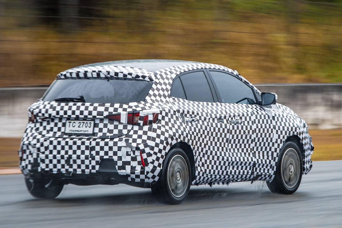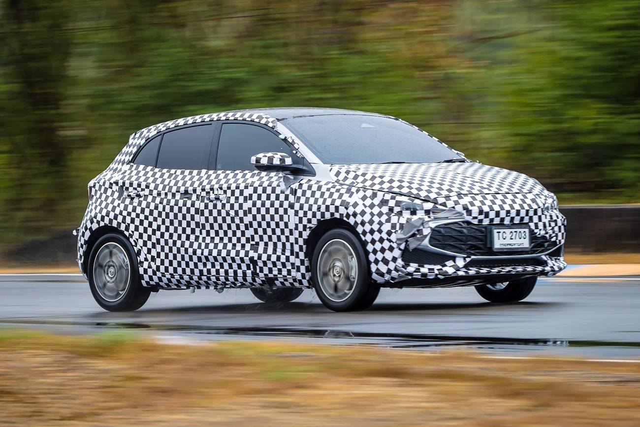 โดยคันที่พรางตัวนั้นไม่ใช่ใครอื่นไกลนั่นคือ MG3 HEV ซับคอมแพ็คแฮทช์แบ็กตั้งใจท้าชนกับ Honda City Hatchback อย่างเต็มรูปแบบ ด้วยภายนอกเด่นด้วยหน้าตานำแรงบันดาลใจจาก MG4 Electric ด้วยช่องระบายอากาศดีไซน์เอกลักษณ์เฉพาะแบบ Digital Burning Grille ไฟหน้า LED ทรงเรียวเพรียวสปอร์ต โลโก้ MG อยู่ตรงชุดกระจังหน้าแบบทึบ ชุดกันชนหน้าขนาดใหญ่พร้อมไฟตัดหมอกหน้าทรงกลมด้านข้างเส้นสายดูกลมกลืนประณีตพร้อมดีไซน์หลังคารถที่ลาดลงตามยุคสมัย กระจกมองข้างพร้อมไฟเลี้ยว ที่เปิดประตูแบบดึงก้าน ด้านท้ายมาพร้อมไฟท้าย LED ลงตัวด้วยกันชนหลังทรงสปอร์ตพร้อมสปอยเลอร์หลังทำให้นึกถึง Honda City Hatchback และล้ออัลลอยขนาด 16 นิ้วลายห้าก้านทูโทนพร้อมยาง 195/55R16 ตัวรถแน่นอนว่ามาทรงท้ายตัดแฮทช์แบ็กด้วยความยาว 4,113 มิลลิเมตร ความกว้าง 1,797 มิลลิเมตร ความสูง 1,502 มิลลิเมตร ฐานล้อ 2,570 มิลลิเมตร