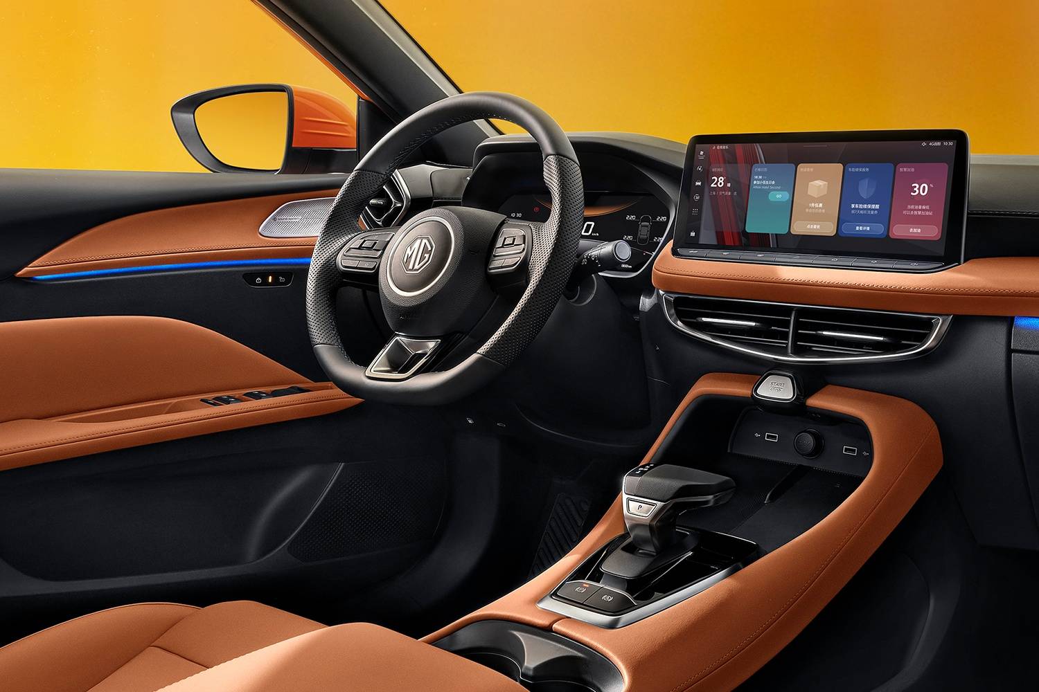 MGเพิ่มออปชันเพิ่มความหรูหรากด้วยไฟสร้างบรรยากาศภายใน Ambient Light มากถึง 256 สี เปลี่ยสีตามจังหวะเพลงและปรับความสว่างตามแสงภายนอก พร้อมลำโพงคุณภาพถึง 8 จุด ให้ระบบเสียงแบบเดียวกับโรงภาพยนตร์ความเที่ยงตรงสูง Hi-Fi ซับวูฟเฟอร์ 40Hz + จอสัมผัสระบบความบันเทิงขนาด 12.3 นิ้วสามารถเชื่อมต่อระบบนำทางแบบหน้าจอคู่แบบเรียลไทม์และสมารถหรี่แสงในจอสัมผัสอัตโนมัติเวลาขับรถในอุโมงค์ได้