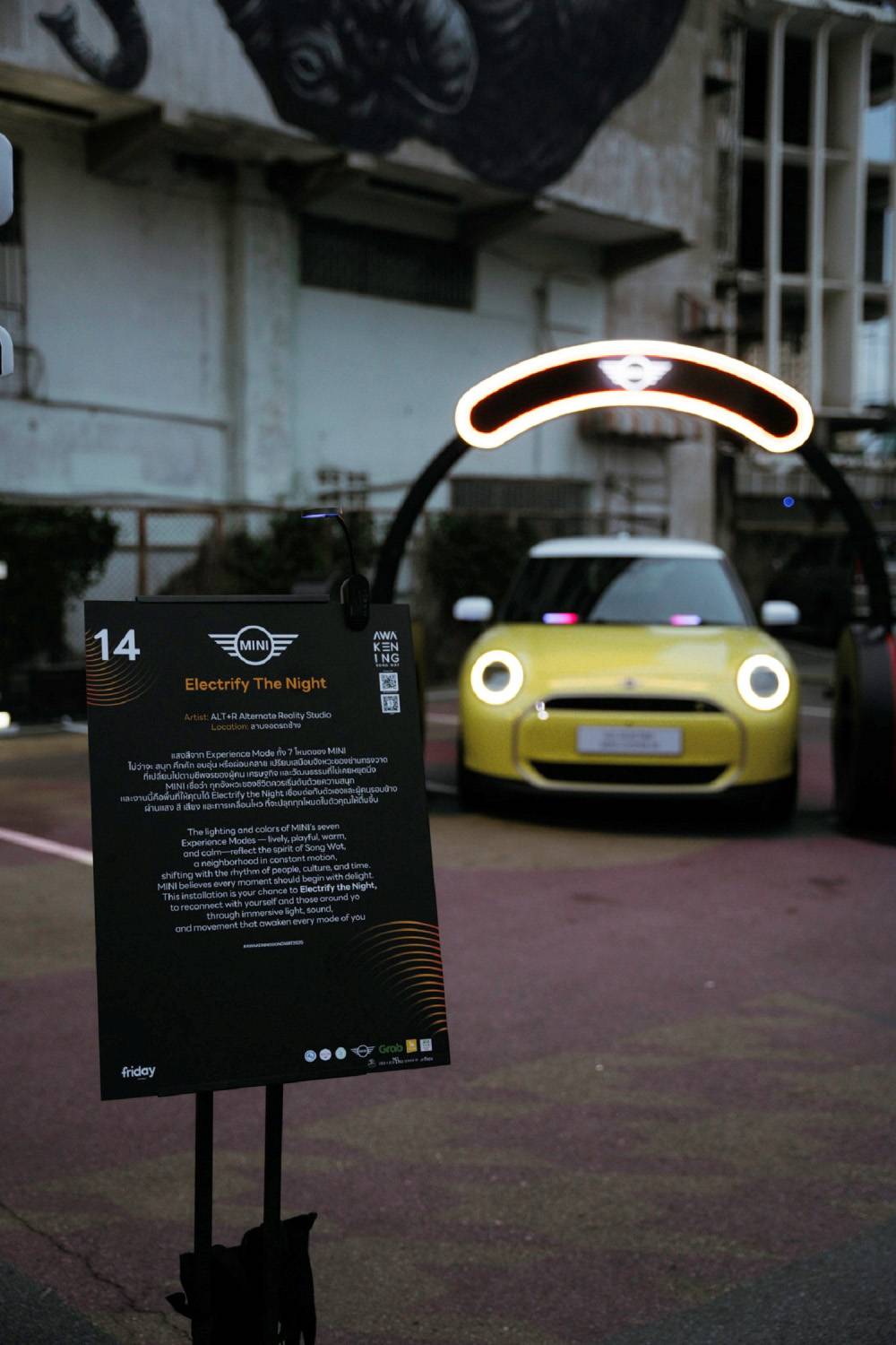 ภายใต้ความร่วมมือกับ Awakening Festivals แปลงโฉมลานจอดรถช้างให้กลายเป็นพื้นที่ศิลปะอินเทอร์แอคทีฟ สะท้อนตัวตนอันเป็นเอกลักษณ์ของ มินิ ด้วยการจัดแสดงรุ่นไอคอนิกอย่าง มินิ คูเปอร์ เอสอี ที่ถ่ายทอดดีเอ็นเอความสนุกสนานและความเป็นพรีเมียมของแบรนด์ได้อย่างสมบูรณ์แบบ ท่ามกลางการตกแต่งด้วยศิลปะจากแสงไฟและดิจิทัลอาร์ตสุดล้ำที่ผสมผสานความร่วมสมัยและสุนทรียภาพเข้าด้วยกันอย่างลงตัว