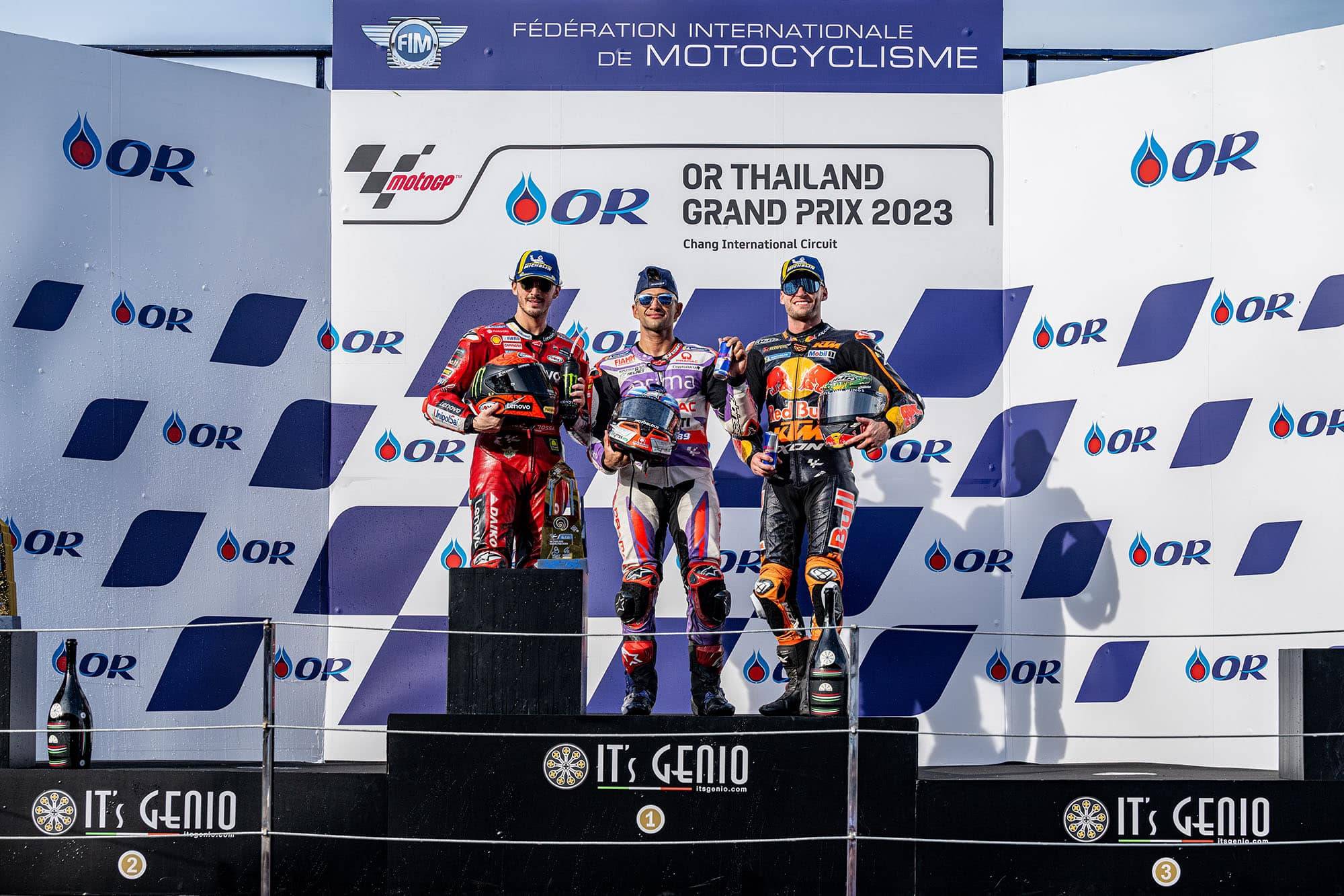 สุดยอดมอเตอร์สปอร์ต 2 ล้อโลก MotoGP ดวลความเร็วสนาม 17 รายการ “โออาร์ ไทยแลนด์ กรังด์ปรีซ์” สุดเดือดบนแผ่นดินไทย ยอดผู้ชมทะลุ 1.79 แสน ฮอร์เก มาร์ติน นักบิดสแปนิชจาก พรีม่า พรามัค เรซซิ่ง ระเบิดฟอร์มเหมาชัยชนะในรุ่น โมโตจีพีไปครอง ไล่จี้ ฟรานเชสโก้ บันยาญ่า แชมป์โลกชาวอิตาเลียนจาก ดูคาติ เหลือเพียง 13 คะแนน ด้าน“ก้อง” สมเกียรติ จันทรา นักบิดไทยจาก อิเดมิตสึ ฮอนด้า ทีม เอเชีย สร้างประวติศาสตร์คว้าโพเดียมในบ้านเกิดอย่างยิ่งใหญ่เป็นครั้งแรก พร้อมสร้างสถิติเป็นนักบิดไทยคนไทยในประวัติศาสตร์ที่ขึ้นโพเดียมใน “โฮมกรังด์ปรีซ์” ได้สำเร็จ