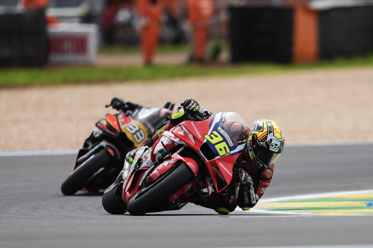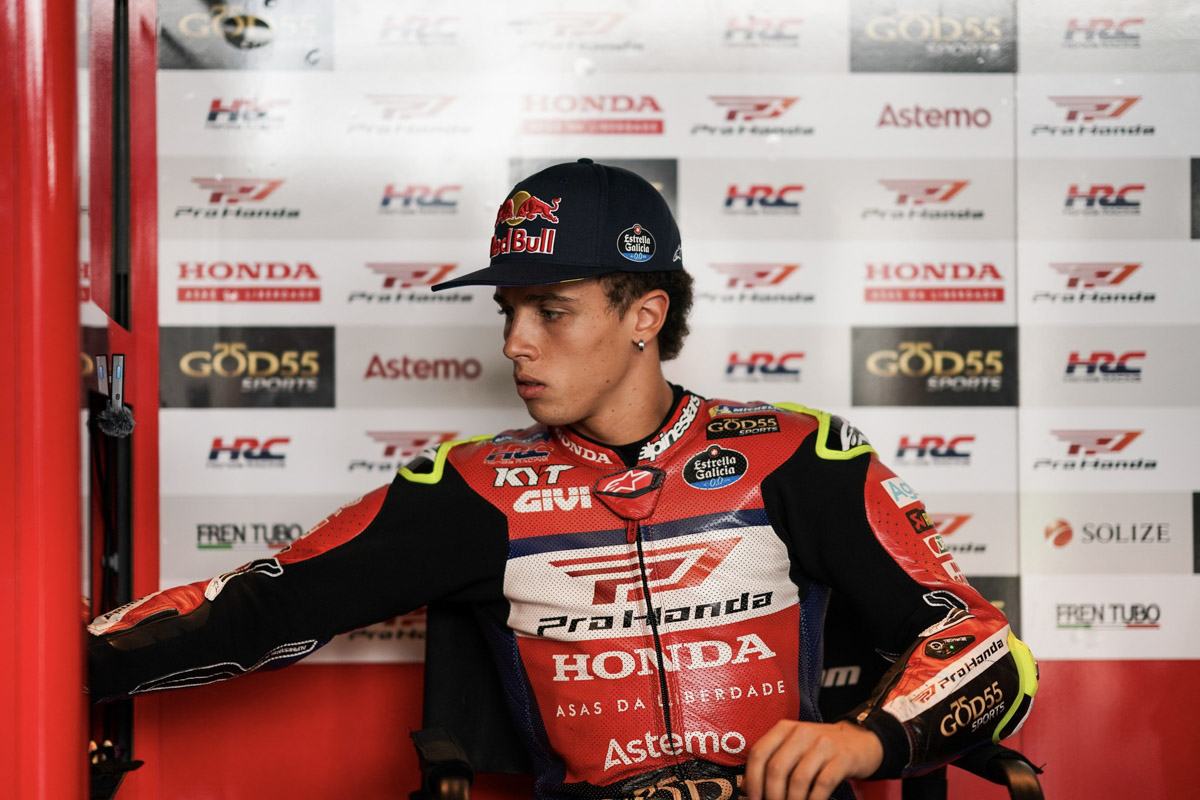ขณะที่ “ลูก้า มารินี” นักบิดอิตาเลียนเจ้าของหมายเลข 10 จาก ฮอนด้า เอชอาร์ซี คาสตรอล เจองานสุดหินต้องออกตัวจากกริ