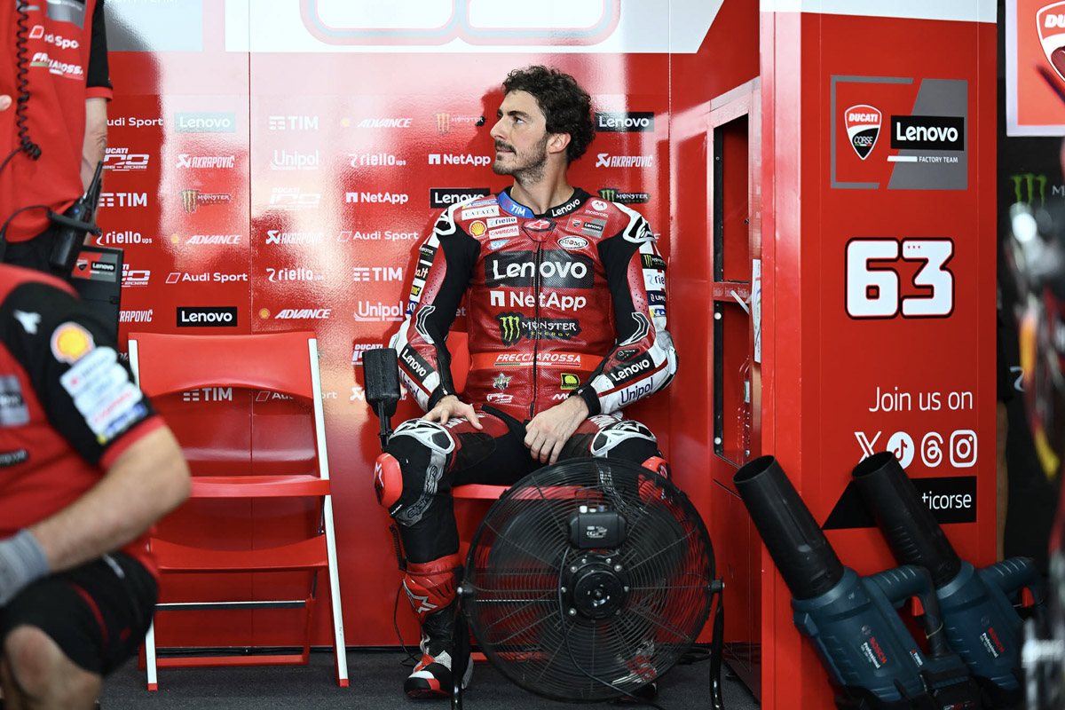 ช่วงเช้า มาร์ค มาร์เกซ พลาดล้มถึง 2 ครั้งที่โค้ง 12 มีแผลถลอกเล็กน้อยที่แขน แต่ยังสามารถกลับมาลงทดสอบและทำเวลาขึ้นอันดับ 2 ได้อย่างแข็งแกร่ง สะท้อนศักยภาพของทีมโรงงานดูคาติที่ยังคงเป็นตัวเต็งแชมป์ อันดับ 3 เป็นของ ฟรานโก มอร์บิเดลลี จาก วีอาร์46 เรซซิ่ง ทีม ตามหลังจ่าฝูง 0.189 วินาที ตามด้วย มาร์โก เบซเซ็คคี จาก อพริเลีย เรซซิ่ง ในอันดับ 4 และ โยฮันน์ ซาร์โก จาก ฮอนด้า แอลซีอาร์ คาสตรอล ขึ้นท็อป 5 โดยอันดับ 1 ถึง 17 มีระยะห่างกันไม่ถึง 1 วินาที แสดงให้เห็นถึงความสูสีอย่างมากก่อนเปิดฤดูกาล