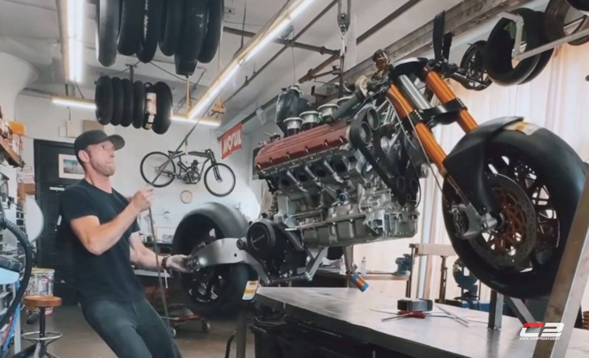ล่าสุด Maxwell Hazen (แม็กซ์เวลล์ เฮเซน) ได้แบ่งปันความคืบหน้าในการสร้างจักรยานยนต์แบบสั่งทำล่าสุด โดยนำเครื่องยนต์มาใส่ในเฟรมที่สร้างขึ้นเอง โดยใช้ขุมพลังเครื่อง V8 จาก Ferrari F355 ซึ่งมีขนาดความจุ 3,495 ซี.ซี. ให้กำลังมากกว่า 370 แรงม้า