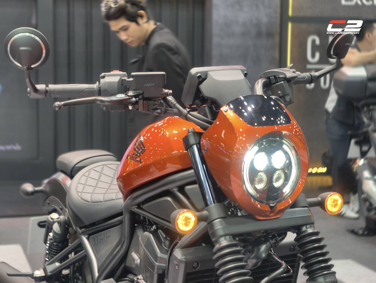 เริ่มกันที่ไลท์แรก New Honda Rebel1100 บ๊อบเบอร์ใหม่ติมเต็มความเร้าใจด้วยดีไซน์ใหม่และเทคโนโลยีล้ำสมัยเอาใจสายคัสตอม ภายใต้คอนเซปต์ “Ride Your Rule” โดดเด่นด้วยครอบไฟหน้าใหม่สีส้มเมทัลลิกเข้าชุดกับตัวถัง พร้อมระบบไฟ Full LED รอบคันทั้งไฟหน้า ไฟท้าย ไฟเลี้ยว และไฟส่องป้ายทะเบียน เสริมความเท่ด้วยกระจกมองข้างติดปลายแฮนด์หุ้มอะลูมิเนียม พร้อมกระจกโครเมียมที่ลดการสะท้อนแสงและให้ทัศนวิสัยคมชัด เบาะนั่งออกแบบใหม่เพื่อความสบายตลอดการเดินทาง รองรับทุกสรีระด้วยความสูงเพียง 709 มม.