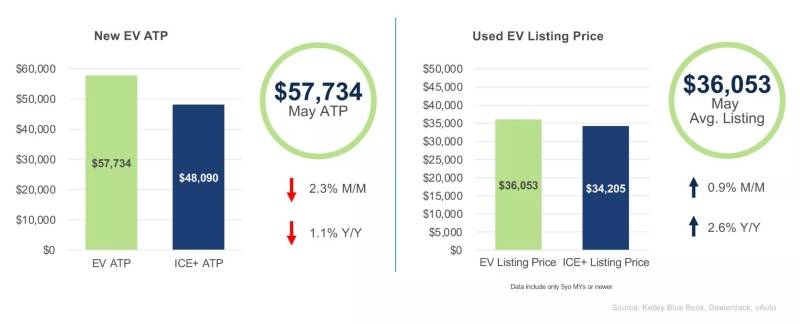 ข้อมูลจาก Cox Automotive เผยว่าราคาเฉลี่ยของ รถยนต์ไฟฟ้าใหม่ กำลังลดลงอย่างต่อเนื่อง ในเดือนพฤษภาคม ราคาเฉลี่ยลดลง 2.3% มาอยู่ที่ 57,734 ดอลลาร์สหรัฐฯ ประมาณ 2.12 ล้านบาท ยิ่งไปกว่านั้น โปรโมชั่นและส่วนลดสำหรับรถอีวีใหม่ยังพุ่งสูงขึ้นถึง 19.4% เฉลี่ยอยู่ที่ 8,226 ดอลลาร์สหรัฐฯ ประมาณ 3.02 แสนบาท ซึ่งคิดเป็นประมาณ 14.2% ของราคาซื้อขายจริง ซึ่งถือเป็นสัดส่วนที่สูงที่สุดนับตั้งแต่ปี 2019