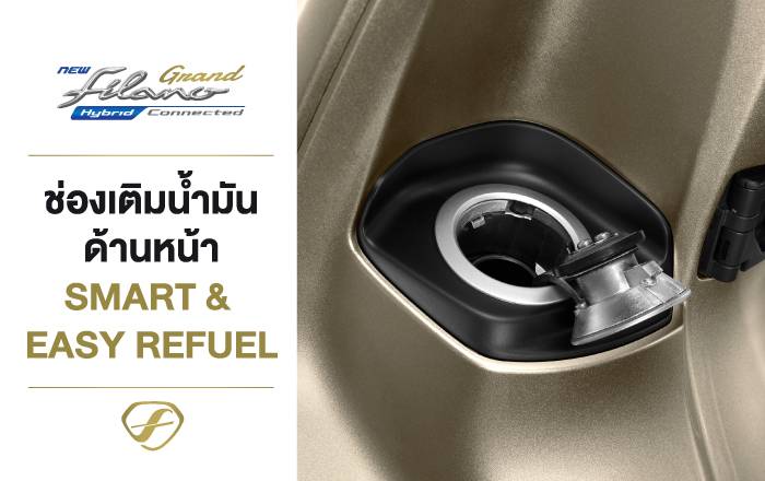 - ช่องเติมน้ำมันด้านหน้า SMART & EASY REFUEL สะดวกสบาย ไม่ต้องลงจากรถ พร้อมปุ่มกดเปิดฝาอัตโนมัติ