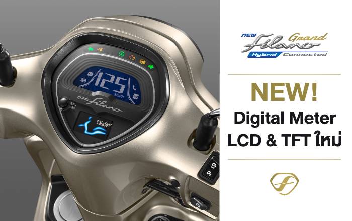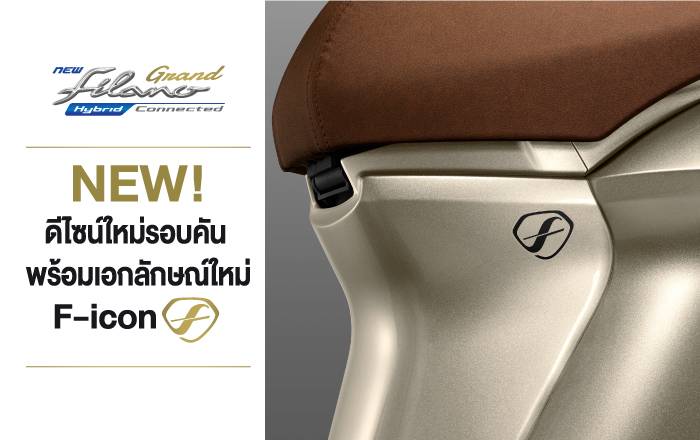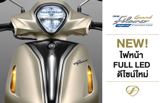 ใหม่! ยามาฮ่า แกรนด์ ฟีลาโน่ ไฮบริด คอนเน็คเต็ด NEW YAMAHA GRAND FILANO HYBRID CONNECTED ความพรีเมียมใหม่…คอนเน็คให้ชีวิตมีคลาส ออโตเมติกแฟชั่นพรีเมียม สไตล์โมเดิร์นคลาสสิก ดีไซน์ใหม่สง่างามเหนือกาลเวลา สัมผัสได้ถึงความเหนือกว่าด้วยความสมาร์ทจาก Y-Connect และฟีเจอร์ใหม่ที่ทำให้ชีวิตโมเดิร์นไปอีกขั้น พร้อมสมรรถนะการขับขี่ที่ดีเยี่ยมจากเครื่องยนต์ Blue Core Hybrid 125cc พร้อมเอกลักษณ์ใหม่ F-icon กับสีสันใหม่ที่บ่งบอกถึงรสนิยมในแบบคุณ ตอบสนองทุกไลฟ์สไตล์ได้อย่างภาคภูมิใจ ไปกับชีวิตที่มีคลาส สมาร์ทสไตล์พรีเมียม และคุ้มค่ากว่าด้วยการรับประกันนานกว่าถึง 5 ปี หรือ 50,000 กิโลเมตร*