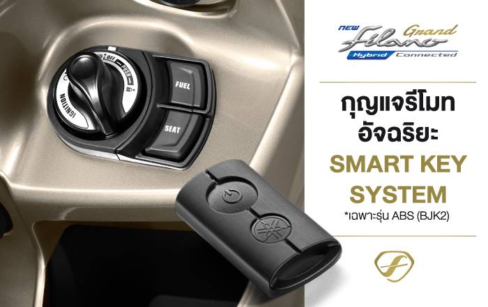 - ระบบกุญแจรีโมทอัจฉริยะ SMART KEY SYSTEM *เฉพาะรุ่น ABS (BJK2) สะดวกกว่าด้วยสวิตช์เปิด-ปิด แบบ Multi Functions ทั้งปลดล็อกสวิตช์สตาร์ท ดับเครื่องยนต์ / ปลดล็อกแฮนด์ / ปลดล็อกเบาะ / ปลดล็อกฝาถังน้ำมัน