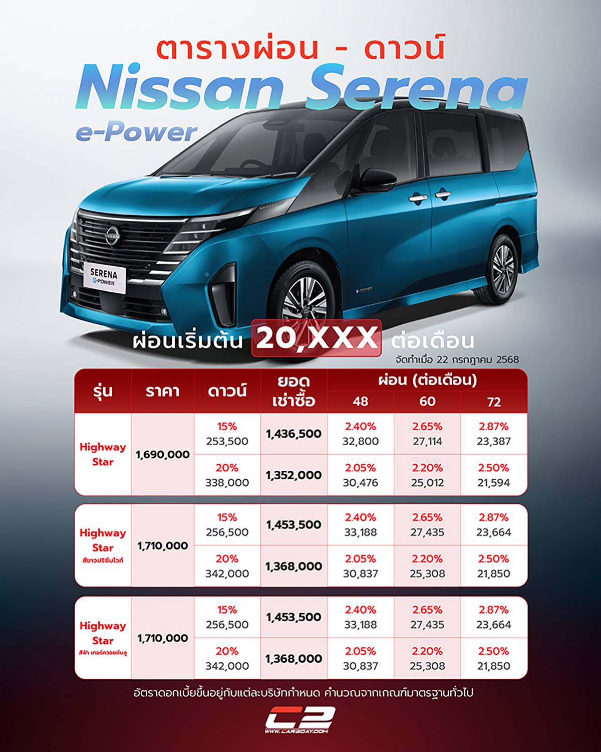 ตารางผ่อน ดาวน์ Nissan Serena e-Power ใหม่