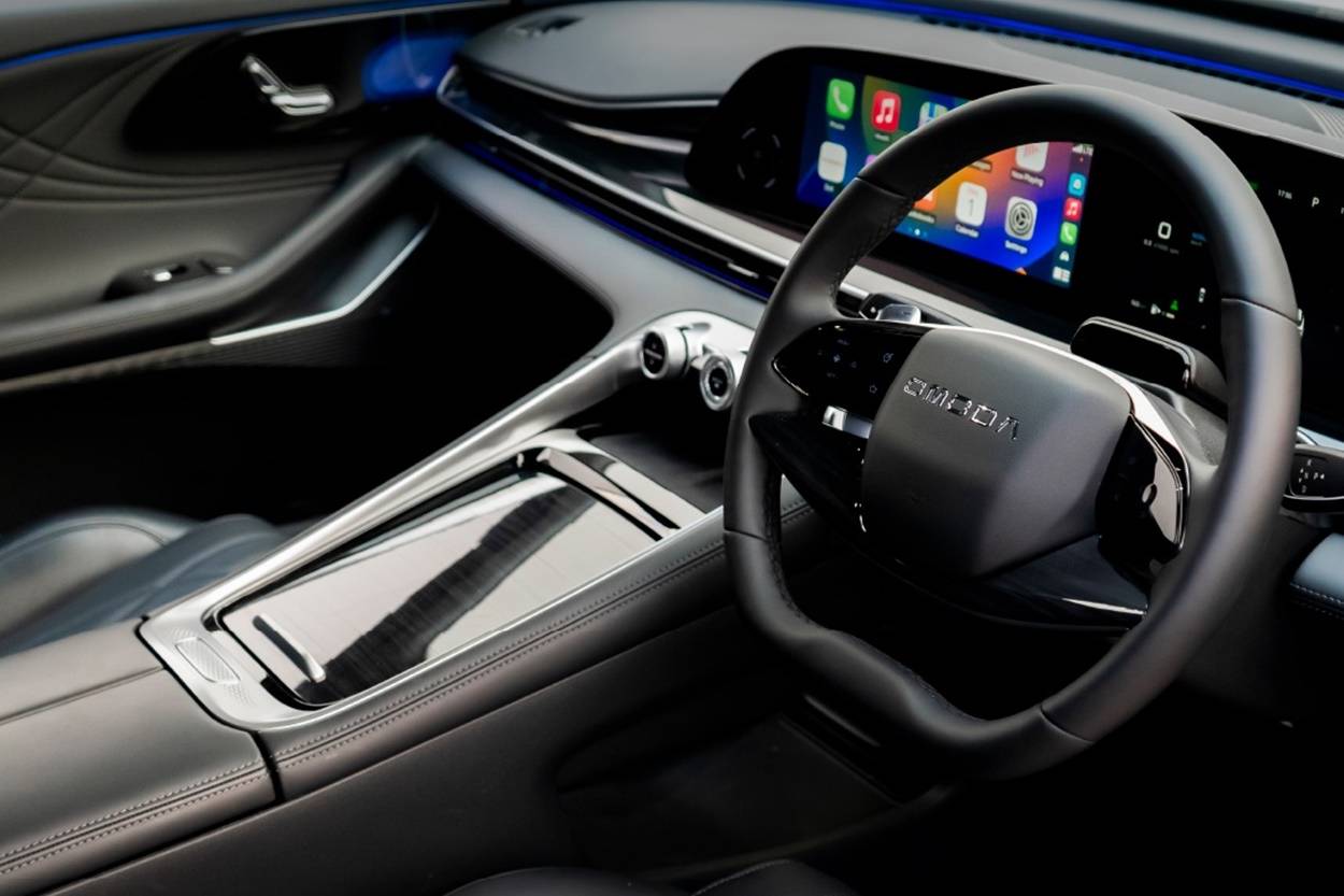พวงมาลัยมัลติฟังก์ชัน 2 ก้านทรงท้ายตัดแบบ Multi-Kinetic Flat-Bottom ปะตัวอักษร JAECOO ไฟสร้างบรรยากาศภายในห้องโดยสารหรือ Ambient Light มากถึง 64 สี จอแสดงผลบนกระจกหน้า AR-HUD 50 นิ้ว และที่ชาร์จมือถือไร้สายกำลัง 50 W ลำโพงคุณภาพจาก SONY 14 จุด เครื่องปรับอากาศแยกส่วนอุณหภูมิซ้าย-ขวา กันฝุ่น PM 2.5 เบรกมือไฟฟ้า พร้อม Auto Hold ปุ่ม Push Start พร้อมกุญแจรีโมท Keyless Entry