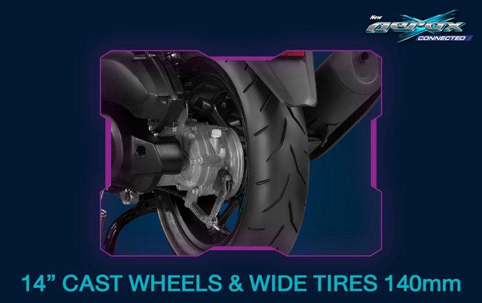 - ยางหลังใหญ่ 140 มม. ล้อแม็ก 14 นิ้ว ใหญ่สุดในคลาสสปอร์ตออโตเมติก เฉียบคมทุกการเข้าโค้ง