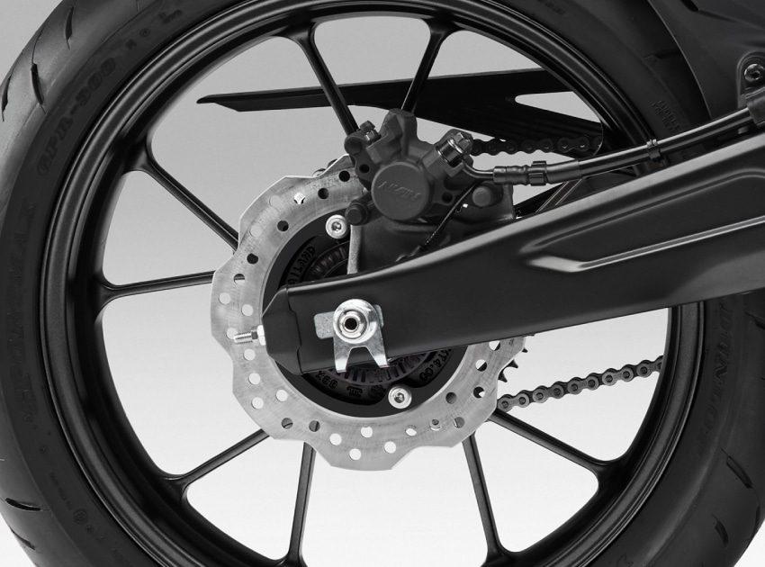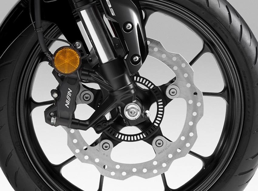 ด้านระบบเบรกคาลิเปอร์ด้านหน้าแบบเรเดียลเมาท์ 4 ลูกสูบที่จับคู่กับดิสก์เบรกขนาด 296 มม. ที่ด้านหน้า และ ดิสก์เบรกขนาด 220 มม. พร้อมคาลิปเปอร์เบรกลูกสูบเดี่ยวแบบไฮดรอลิก ที่ด้านหลัง พร้อมด้วยระบบ ABS แบบ Dual Channel พร้อมการติดตั้งแกน Inertial Measuring Unit (IMU)
